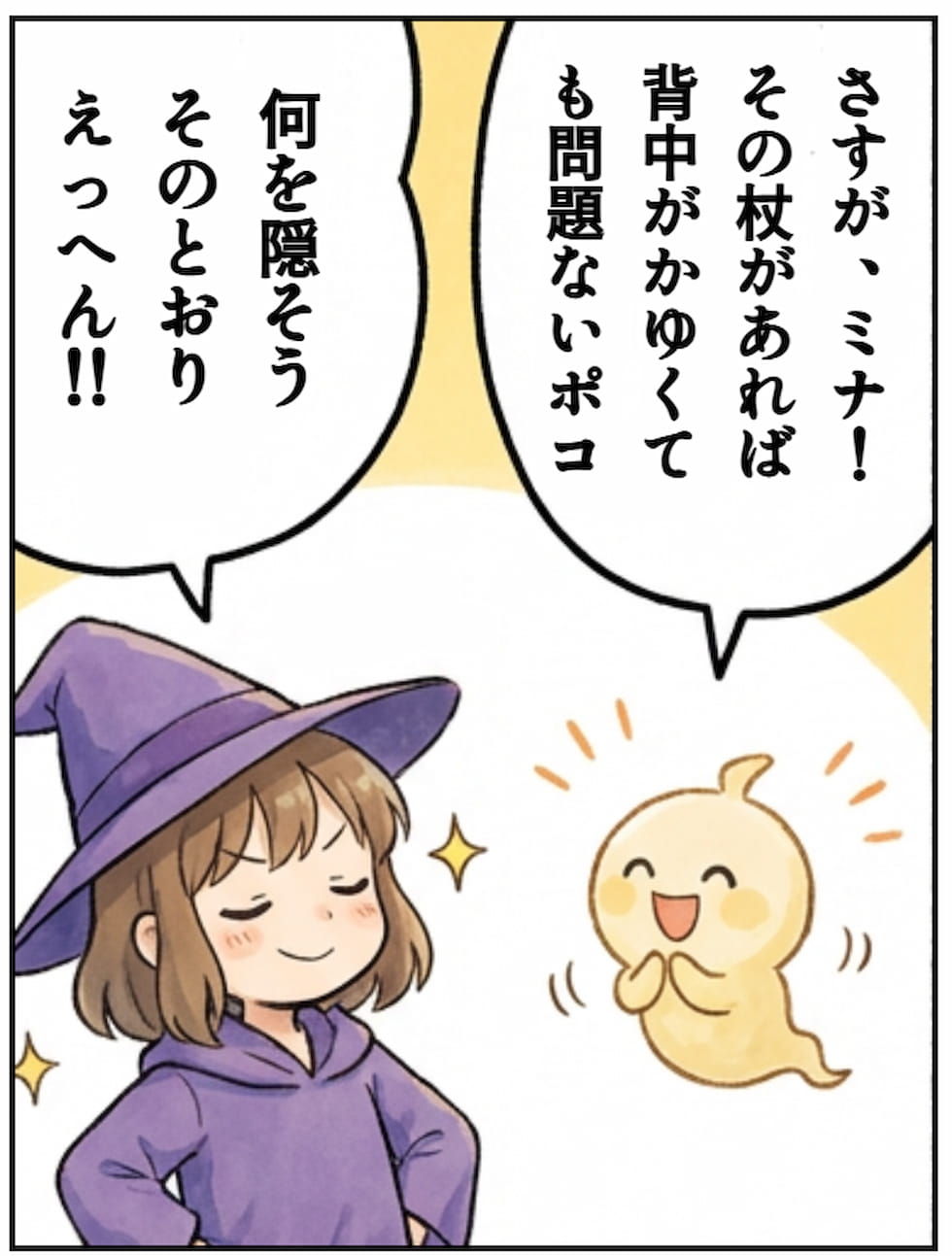 不愧是米娜!有了那根魔杖,就算背痒也没关系,波可。
