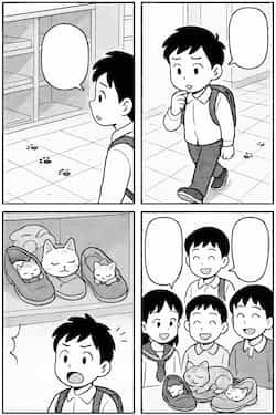 我用 ChatGPT 制作了一个四格漫画。这是一个用于培训新员工的四格漫画。
